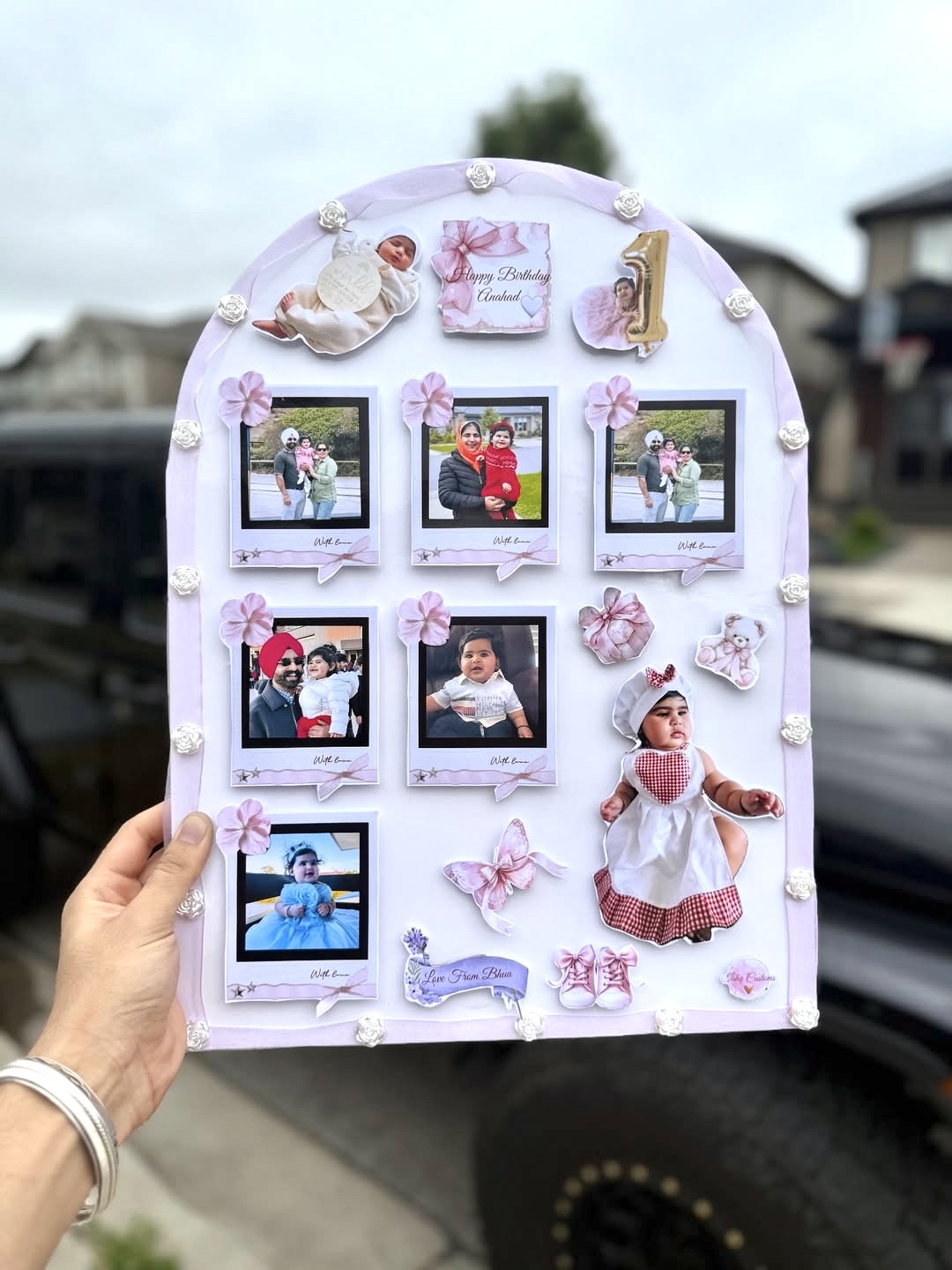 Each Baby Memories Frame is 100% handmade using premium-quality materials and carefully arranged photo layouts. From newborn photos to special family memories, every element is customized to reflect the baby’s journey in a soft, elegant, and playful design. Delicate details, pastel tones, and personalized touches make this frame truly special and full of emotion.